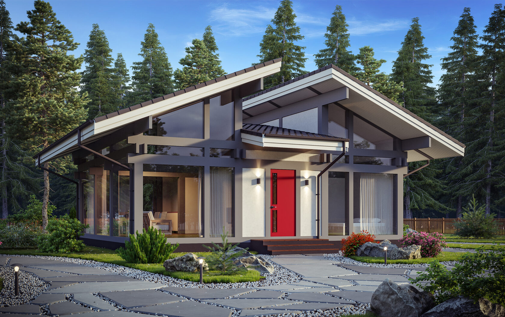 Архитекторы ценят возможность варьировать планировку под нужды заказчика: от компактных домов до просторных загородных особняков. Особенность одноэтажного решения — отсутствие лестниц и возможность организации всех помещений на одном уровне, что упрощает жизнь и повышает комфорт. Важной частью дизайна становится объединение интерьера с наружным пространством с помощью больших окон и террас, что улучшает освещение и наполняет дом естественным светом.